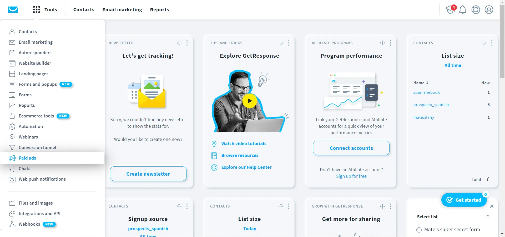 Con GetResponse puedes diseñar campañas de correo, captar y gestionar contactos, crear embudos de conversión y generar ventas desde un entorno unificado.