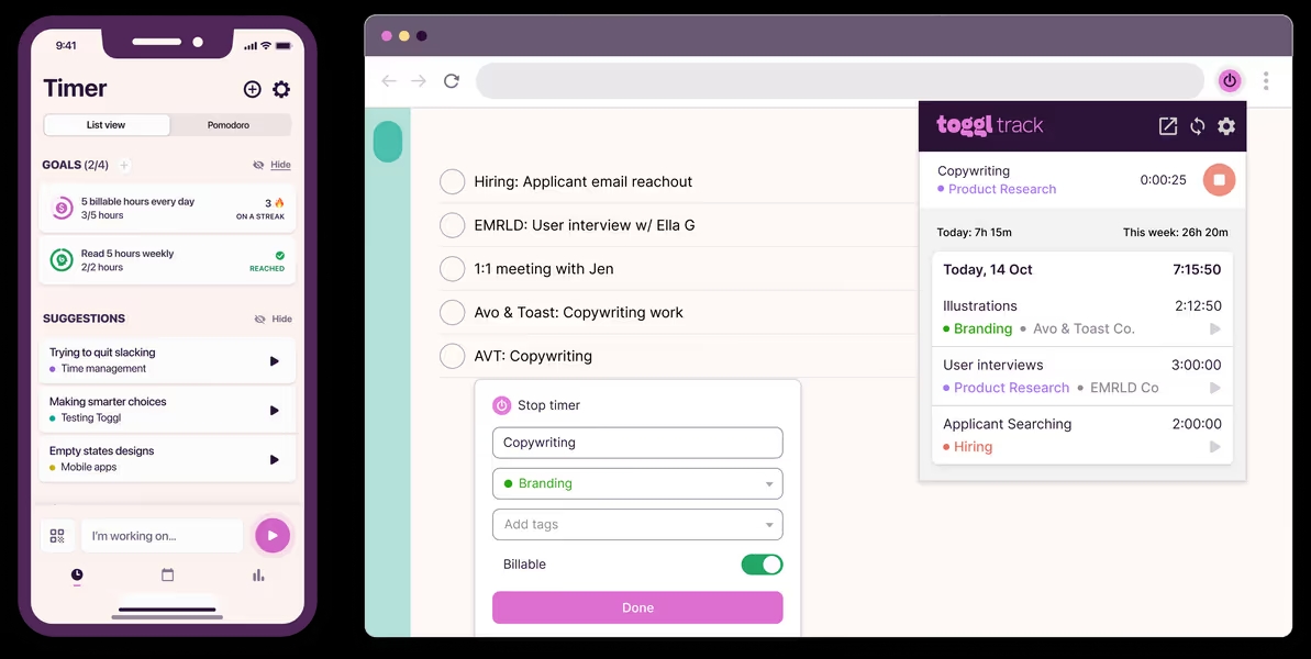 Toggl es un software de seguimiento de tiempo profesional que permite a equipos y empresas registrar, analizar y optimizar las horas de trabajo desde cualquier dispositivo.