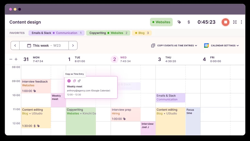 Toggl se destaca por su interfaz intuitiva y fácil de usar, lo que minimiza la curva de aprendizaje y facilita que equipos de todos los tamaños empiecen rápido sin formación extensa.